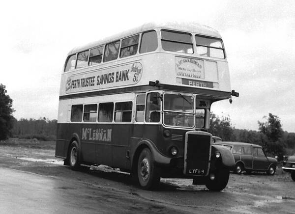 Acquired from London Transport in 1963, McLennan's LYF89, a Leyland 7RT with Park Royal H30/26R body, RTL1148, is seen at Spittalfield with platform doors which McLennan had fitted before entry into service.