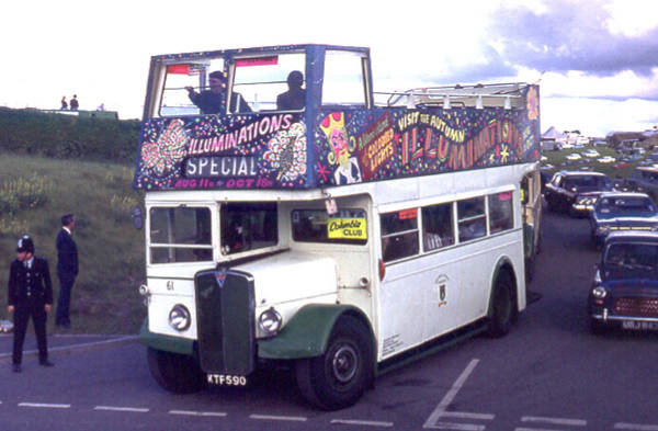 Morecambe 61, KTF590, was an A.E.C. 9612E Regent III with a Park Royal H30/26R body new in August 1949.