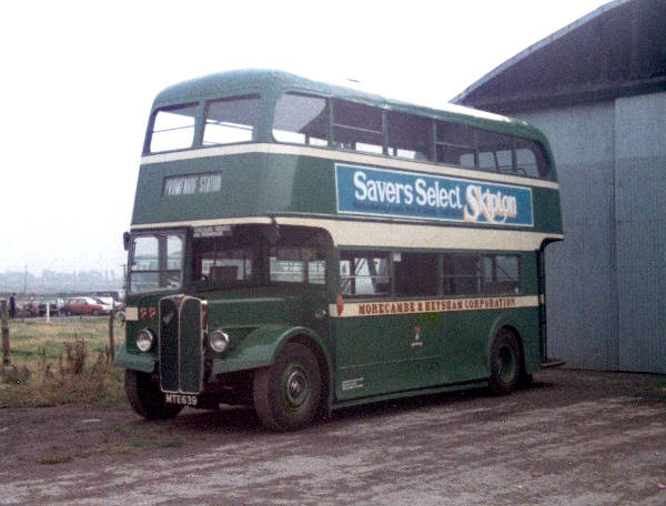 Morecambe and Heysham 77, MTE639, an AEC Regent III with Weymann H30/26R body, seen on an enthusiasts' day out.