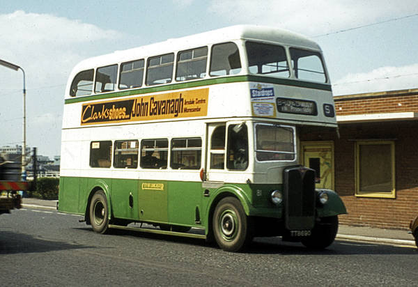 Morecambe & Heysham Corporation 81, TTB690, an AEC Regent III 6812A with Park Royal H30/26R body, new in 1954.