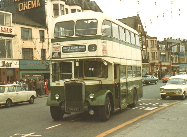 Morecambe & Heysham's 88, 34MTD, a Leyland PD2/37 with Massey H37/27F bodywork new in 1960. Taken on promenade at Morecambe in August 1972.