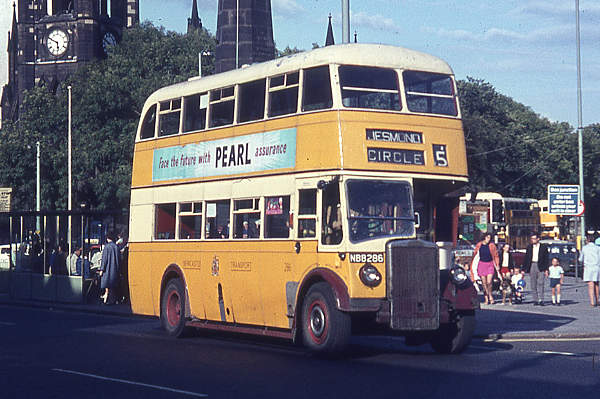 NBB286, Newcastle Corporation 286, was a Leyland PD2/1 with a Leyland H30/26R body, new in May 1950, one of 20 delivered that year.