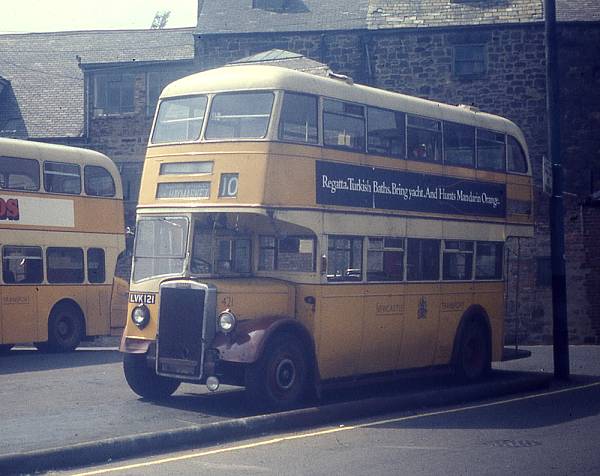 Newcastle Corporation 421, LVK121, an all Leyland PD2/1 built in 1948 and still giving service 21 years later.