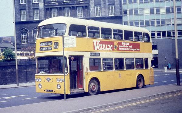 Operating on route 46 Polwarth Drive via North Road waiting at the stand near Central Station. Advertising a Sunderland beer in Newcastle!
