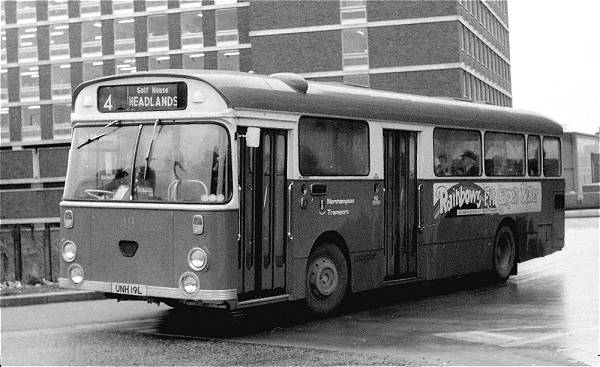 Northampton 19, UNH19L, a Daimler Fleetline with Willowbrook B45D body, new in April 1973, part of a batch of 20.