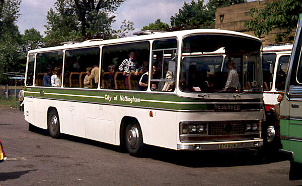 Seen at Wembley Stadium, Nottingham 1, BTV601K, the first of a pair, was a Bedford YRQ with a Willowbrook C45F body, new in April 1972.