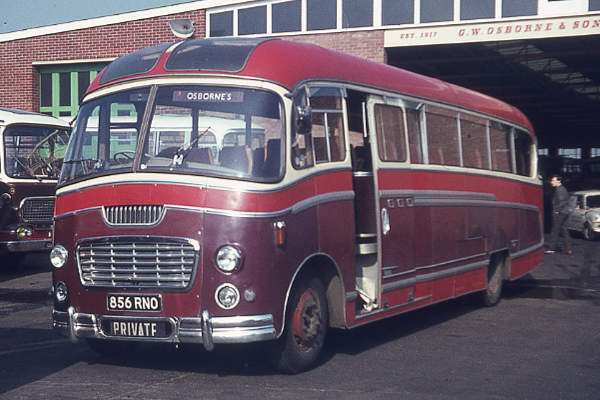 Osborne, Tollesbury 856RNO was an early Ford Thames Trader 570E with Duple C41F bodywork which had been new to PH Underwood, West Mersea, in July 1959.