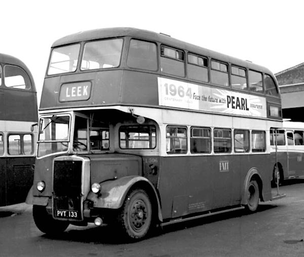 Potteries, Stoke L506, PVT133, a Leyland PD2/12 with a Leyland L27/26R body had been new in March 1952 to Baxter, Hanley, and was acquired in December 1958.