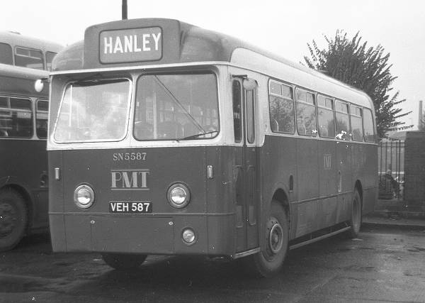 Another photo from that wet Sunday in Derby. Potteries Motor Traction SN5587, VEH587, an AEC Reliance with Weymann B44F body new in 1955, hence the 1st 5 in the fleet number - this eccentric system was introduced in 1954 and abandoned after 1959.