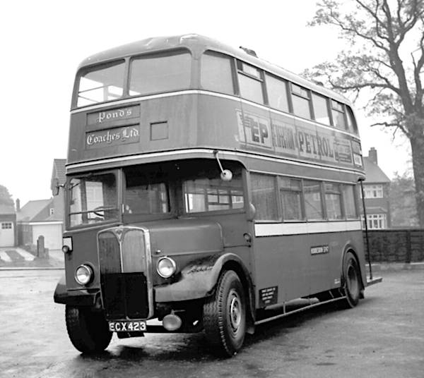 ECX423, was the fourth of six A.E.C. 9612E Regent IIIs with Northern Coachbuilders L29/26R bodies which were new in June 1949 to Huddersfield Joint Omnibus Committee, where it was numbered 223.