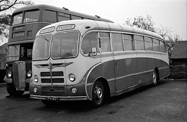 Pond, Nazeing YPH807 was a Bedford SBG with a Burlingham Seagull C41F body which had been new to Cooke, Stoughton in January 1956, with whom it was numbered 1.