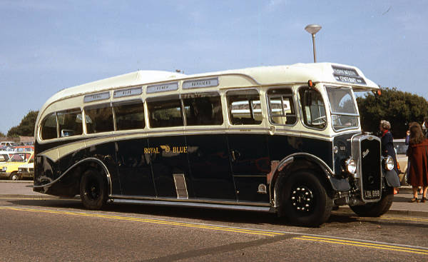 The first of two photographs taken at the Royal Blue Centenary Rally in Bournemouth in 1980 shows preserved ex-Southern National (Royal Blue livery) 1269 LTA898 of 1950.