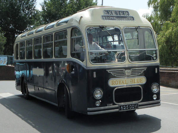 Former Royal Blue 1960 Bristol MW6G/ECW C39F 2246, 625DDV, seen in Blandford Forum on the second day of the three day Royal Blue Run.