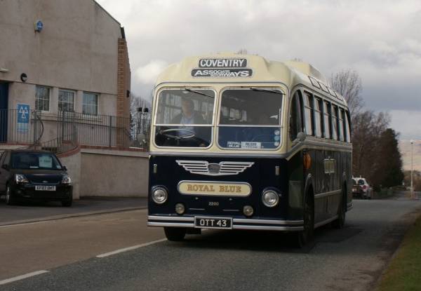 Royal Blue 2200, OTT43, a 1953 Bristol LS6G with ECW body heads towards Kirkby Stephen. The vehicle has the famous Royal Blue roof mounted luggage rack, a feature of Royal Blue coaches until the late nineteen fifties.
