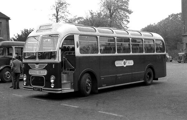 Western National XUO721, 2238 in the Royal Blue fleet, was a Bristol MW6G with an Eastern Coachworks C41F body new in 1958 and was heading for Birmingham on an Associated Motorways service when seen in Newbury.