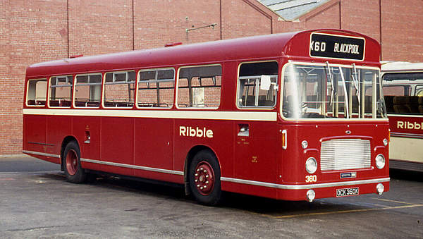Ribble, Preston 360, OCK360K, seen at the Coliseum Bus Station in Blackpool, was a Bristol RESL6L with an Eastern Coachworks B47F body.