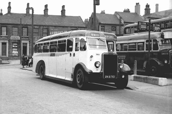 Ribble 780, RN8761, a Leyland TS8, dates from 1939 and originally had a Burlingham B32F body, but the Duple C31F body of 1936-1938 vintage was fitted in 1951.