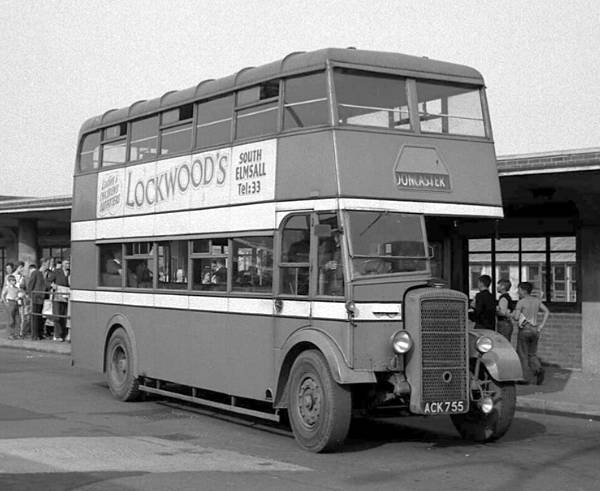 Everett, South Kirkby (t/a United Services) ACK755, seen in Wakefield Bus Station, departing for Doncaster, was a Daimler CWA6 with a Duple L27/28R body which had been new as Ribble 2409 in September 1943, and which had been acquired by Everett in May 1957.
