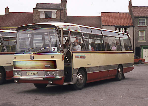 Scarlet Band, West Cornforth, CTN12J, a Bedford YRQ built in 1971 with Duple Viceroy C45F bodywork.