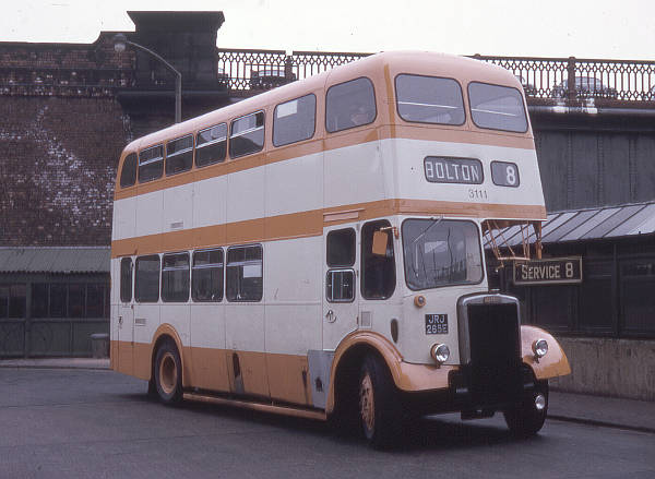 Greater Manchester PTE 3111, JRJ265E, a Leyland Titan PD2/40 built 1967 with MCW H36/28F bodywork. This had been new as Salford 265.