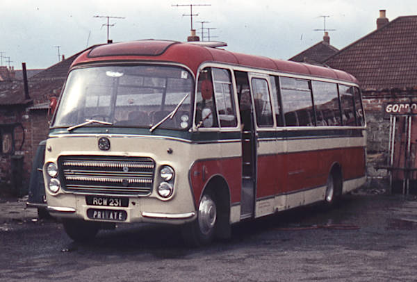 Saltburn Motor Services 53, RCW231, a Bedford SB5 built in 1964 with Plaxton Embassy III C41F bodywork.