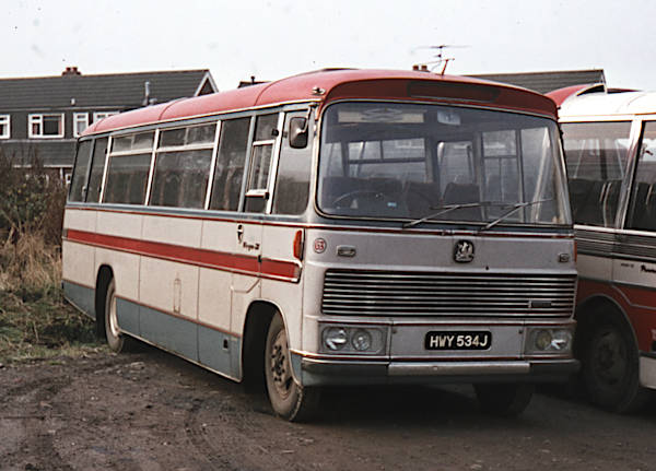 Saltburn Motor Services 63, HWY534J, a Bedford SB5 built in 1971 with Duple Vega 31 C41F bodywork.