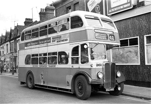 Southend Corporation 261, EHJ445, an AEC Regent III with Massey L27/26R body, new in 1950.