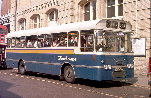 Tillingbourne, Gomshall GPA846N was a Bedford YRQ with a Plaxton Derwent II B45F body seen at Putney Bridge Station whilst operating a rail replacement service for London Underground.