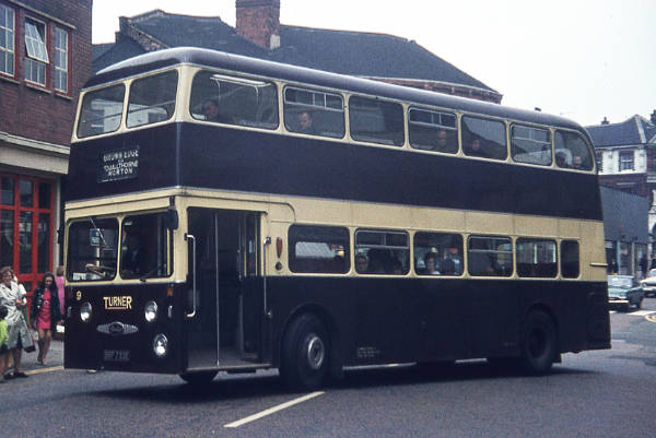 Turner, Brown Edge 9, BRF733E, was a Daimler Fleetline CRG6LX with Northern Counties H44/33F bodywork new in January 1967.