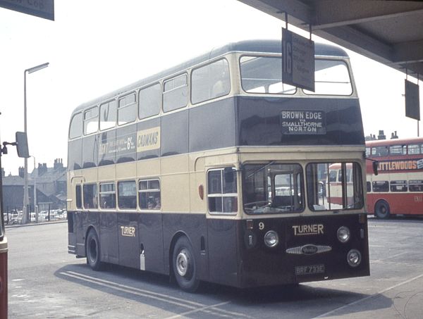 Turner of Brown Edge 9 BRF733E, a Daimler Fleetline CRG6LX built in 1967 with Northern Counties H44/33F bodywork.