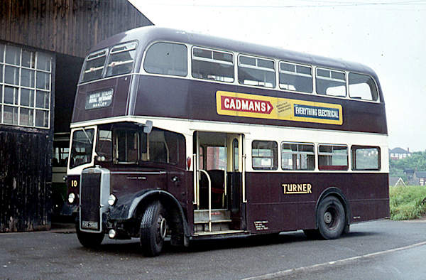 Turner, Brown Edge 10, KRE266B, was a Leyland PD2/37 with a Massey H37/27F body which had been new in June 1964. It is seen here at the Turner garage in High Lane and was withdrawn in November 1972, passing to Stonier, Goldenhill in the same month.
