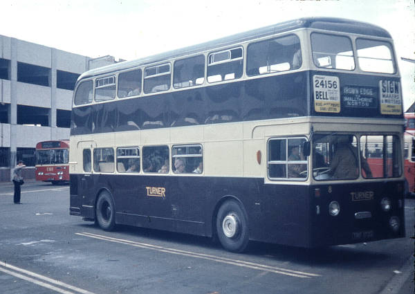 Turner of Brown Edge 8, TRF172G, a Daimler Fleetline CRG6LX built in 1969 with Northern Counties H44/33F bodywork. Plenty of room upstairs for passengers wishing to go to Brown Edge via Smallthorne and Norton.