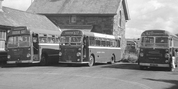 Southern National 621, 323EDV, was a Bristol SUL4A with an ECW B36F body dating from 1961. On its left is 1775, TUO491, a Bristol LS5G with an ECW B45F body dating from 1955 while oOn the right is 1217, a Bristol LL6B with an ECW FB39F body dating from 1958.