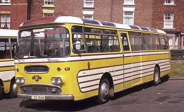 Hutchinson Bros of Husthwaite 122EUA, a Leyland Leopard PSU3/3RT from 1963 with Plaxton Embassy C49C bodywork.