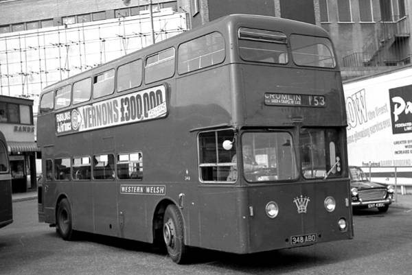 Western Welsh, Cardiff 348, 348ABO, was a Leyland PDR1/1 Mark II with a Weymann L37/33F body new in November 1962.