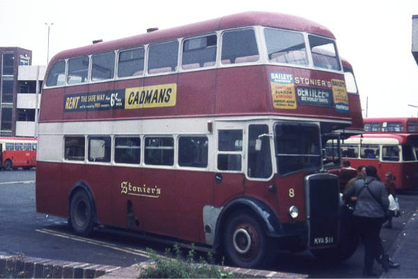 Stonier, Goldenhill 8, KVA511, was a Leyland PD2/12 with Leyland H30/26RD bodywork, which had been acquired from Hutchison, Overtown in November 1965.