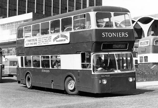 Stoniers purchased DAU422C from Nottingham in 1977, just prior to the takeover by Berresfords. This Leyland Atlantean PDR1/2 with Northern Counties H44/33F bodywork is seen leaving Hanley bus station in 1980.