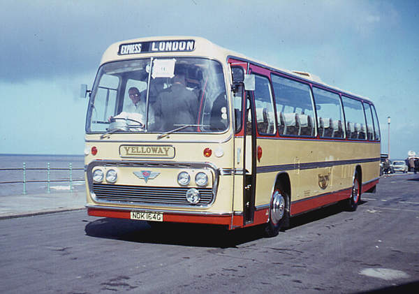 Yelloway were a regular competitor in the Blackpool Coach Rally and NDK164G, an A.E.C. 6U3ZR Reliance with Plaxton Panorama Elite C49F body was their entry in the 1969 Rally. Seen here on the lower Promenade at Blackpool.