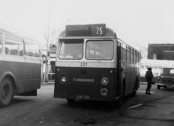Yorkshire Woollen 231, GHD750, a 1961 AEC Reliance with Marshall 43 seat bodywork The bus was originally 878 in the YWD fleet and was renumbered in the late 1960s.