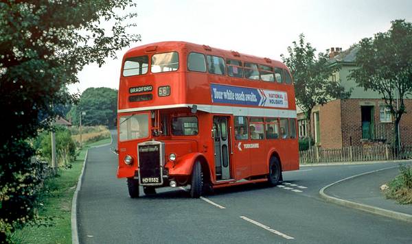 Yorkshire Woollen District 503, HD8552, was a Leyland PS2/5 built in 1950 originally with a Willowbrook B32F body with fleet number 698 and lengthened in 1955 to B38F.