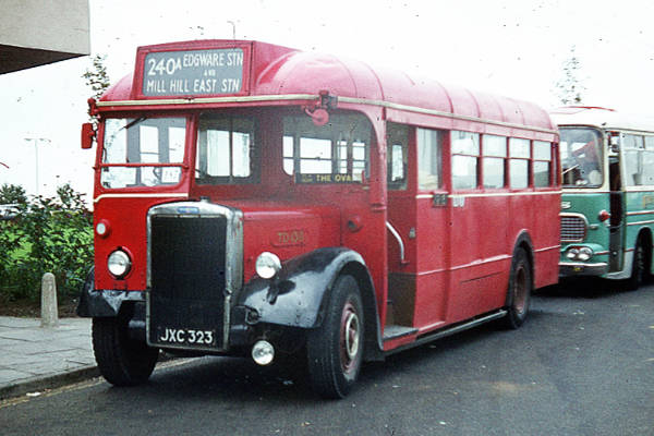 Preserved ex-London Transport TD130, JXC323, was a Mann Egerton bodied Leyland PS1.