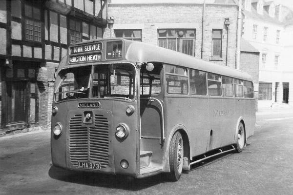Midland Red 3373, LHA373, on a hot sunny June day in 1965, seen in a really beautiful old part of Shrewsbury.