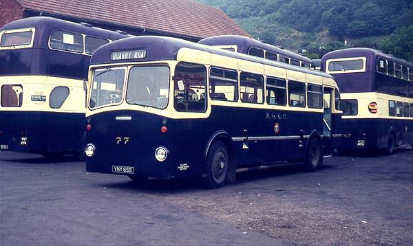 One of nine buses (six double and three single deck) new to Pontypridd in 1957 as trolleybus replacements was 77, VNY655, a Roe B41R bodied Guy Arab LUF.