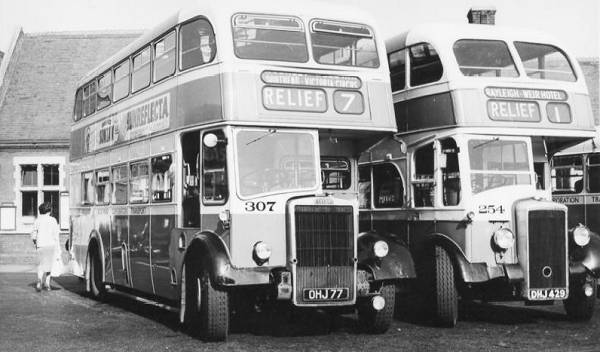 Southend PD2 307, OHJ77, alongside 1949 Daimler CV 254, DHJ429, both with Massey bodies. Click here for more details from the Southend fleet list pages.Photographer unknown, Ian Banks collection, Victoria Station, Southend See the Site Map for further details about copyright.