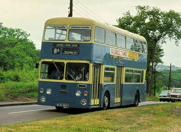 Southend Fleetline 369, WJN369J, in Hall Road on an 8a to Southend Central Station.