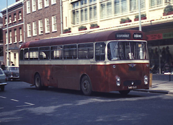Duggins, Newcastle under Lyme, 1 545GVD, an A E C Reliance 2U3RA built in 1963 with Plaxton Derwent B53F bodywork.
